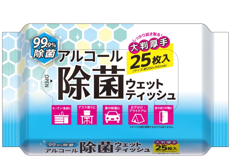 水と石鹸がなくても、どこでも手や物を拭いて清潔に保てます。外出先での食事前や、公共の場所で物に触れた後など、サッと使えて便利です。